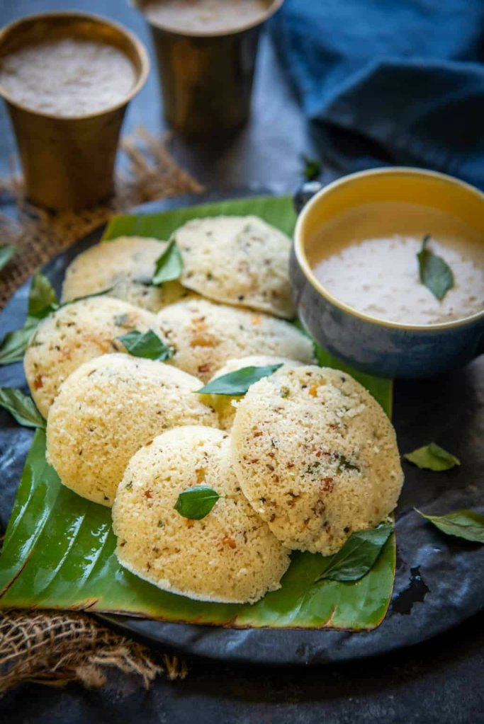 Take an kadai, add 2 table spoon of oil, let it get hot. Then add mustard, Bengal gram , urad dal, chopped ginger, green chilies to your hotness , cashew nuts, 5 to 6 breaked pepper, 1 cup of rava add them all and roast it. then leave it for few minutes , let it get cool. Add required amount of salt , half cup of curd , then mix them all ,let it rest for 15 minutes . then add some coriander leaves, curry leaves , add some water to it , make the batter idly batter consistency. And yah make idly and enjoy!!